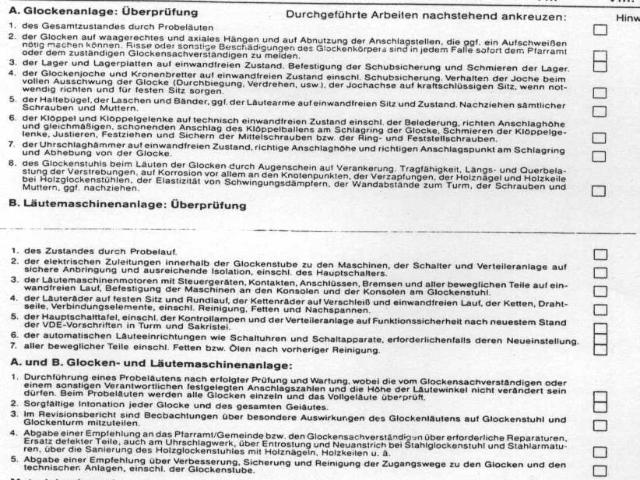 Die Wartung einer Glockenanlage muß gewissenhaft durchgeführt werden. Von ihr kann unter Umständen das Leben eines Menschen abhängen !